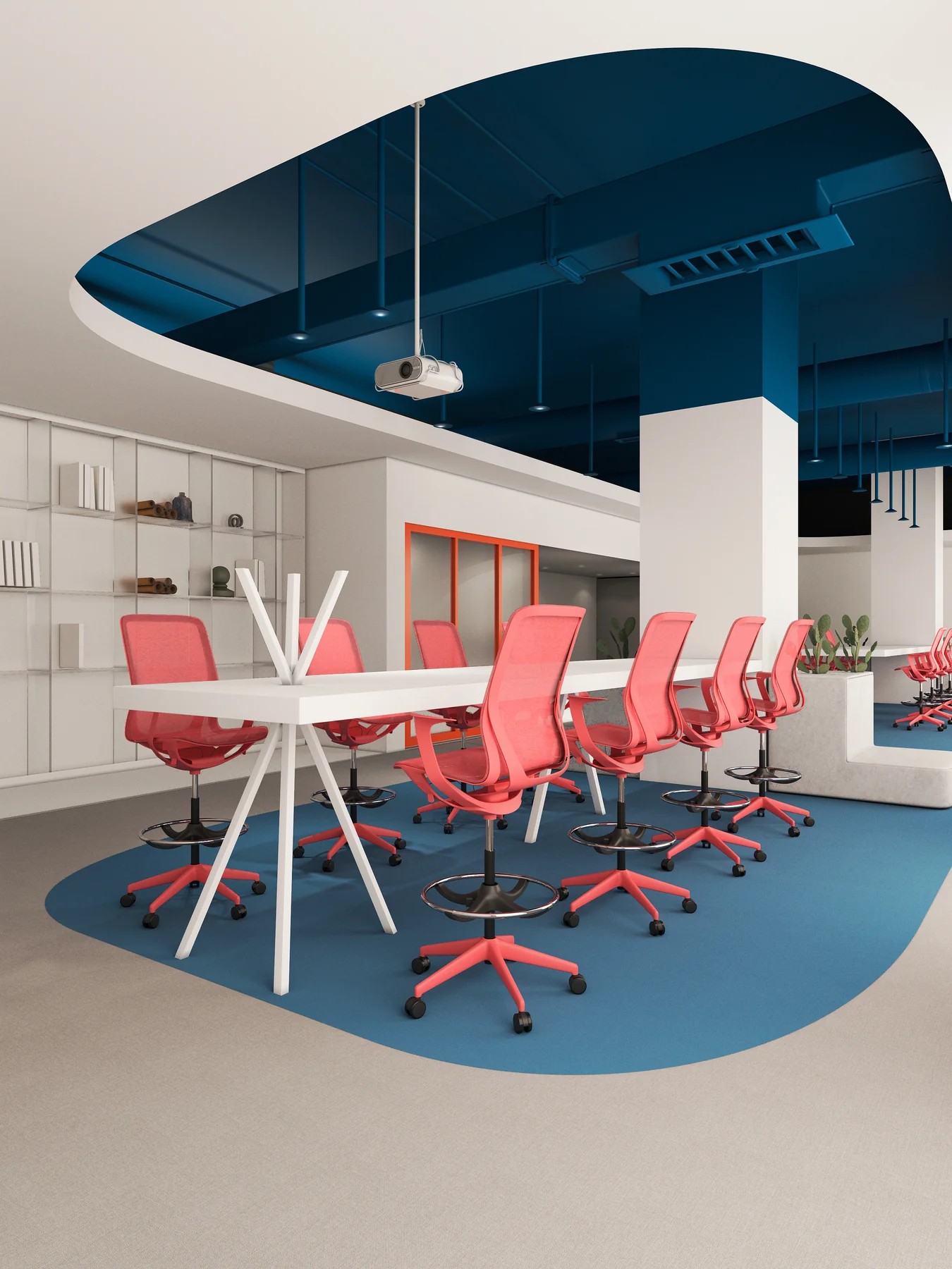 AMBIENTE Interior PREMIOS Premio Alemán de Diseño ACABADOS Malla color gris/coral Base de poliamida Diseño ergonómico ACCESORIO Aro cromado Pistón de barril