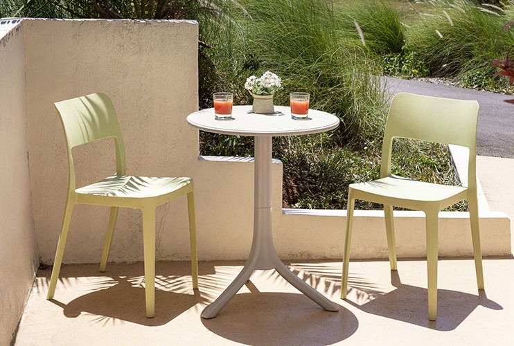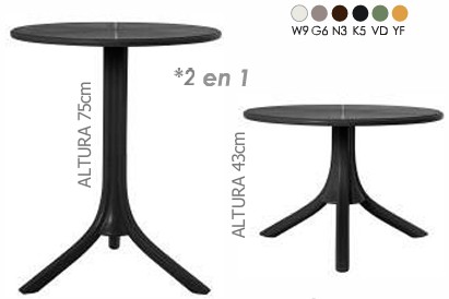 mesa: en polipropileno de alta resistencia y duración para intemperie e interior, resistente a los rayos ultravioleta (UV) y al ambiente salino; ajustable en dos alturas. color: blanco (W8), gris (G6), café (N3), negro (K5), verde agave (VD), ámbar (YF). resistencia: peso sugerido 5 kgs.